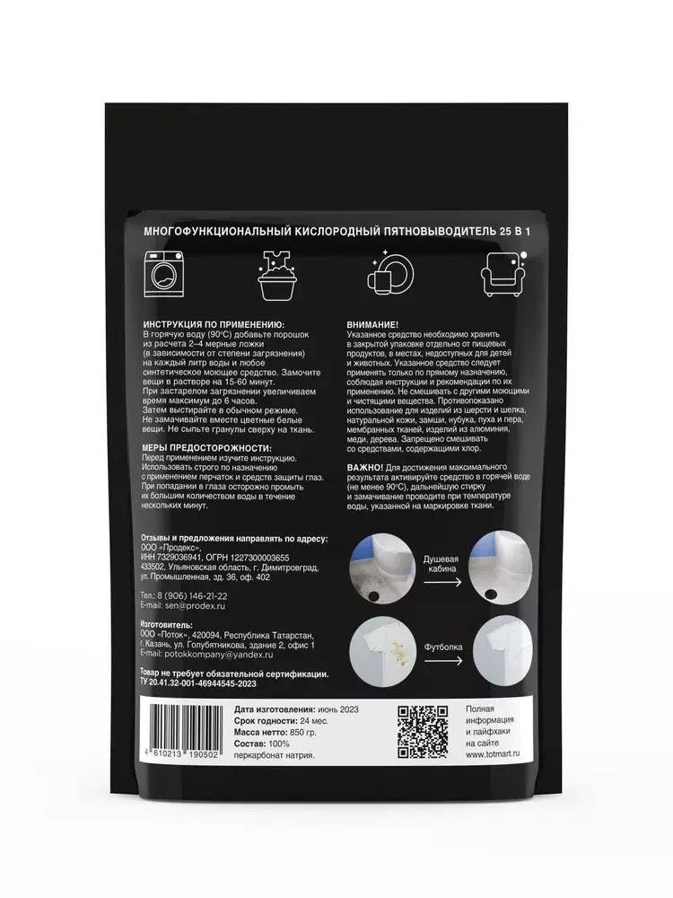 Кислородный пятновыводитель Totmart: Кислородный пятновыводитель - всё еще можно назвать новым трендом в уходе за одеждой. Он обеспечивает эффективное удаление пятен, включая застарелые и разнообразные пятна, с минимальным негативным воздействием на ткани. С использованием кислородного пятновыводителя, вы можете добавить его в стиральную машину при температуре 90°C и пойти пить кофе, зная, что одежда или постельное белье малыша отстирается.